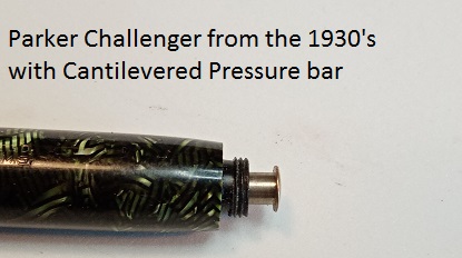 The correct method of installing a pressure bar is on servicing to remove the Button and from the barrel end then pull out the pressure bar, then remove the section and old sac etc, to service the pen.