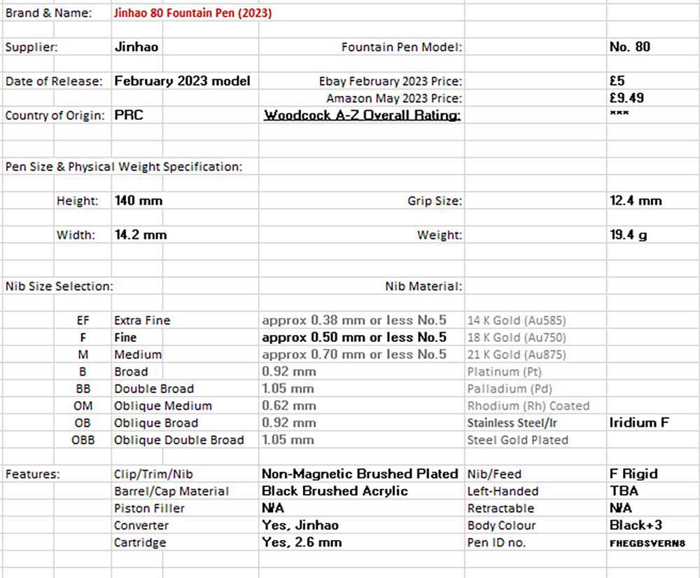 This is the Jinhao 80 Black Fiber Brushed Fountain Pen. I selected the Fine size nib version. There were also other options of this pen, i.e., black pen with either a silver or black brushed alloy clip and the option of Ultra Fine nib. If you put Jinhao 80 next to very long established Lamy 2000, the similarities are amazing. Internal design and workings are obviously quite different. Though externally, it is a “spitting image to the naked eye”. See Appendix 4 for full details.